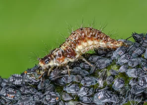 Florfliegenlarven sind die Allrounder unter den Nützlingen. Wie ein Vielfrass fressen sie alles, was ihnen in die Quere kommt: