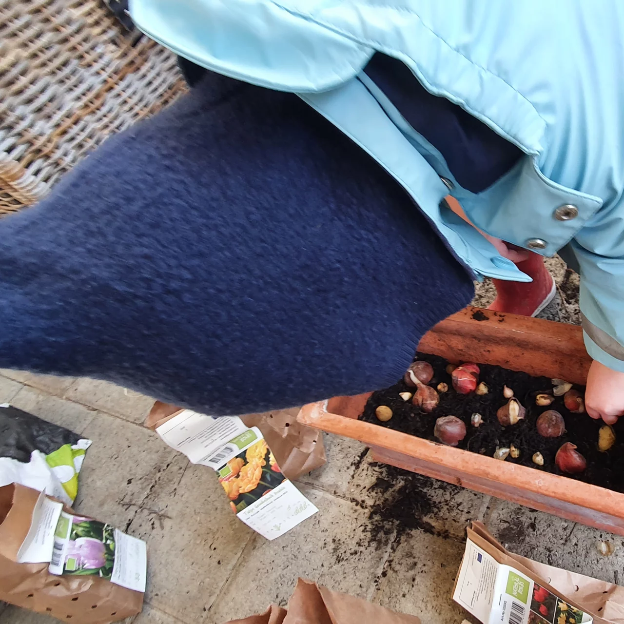 Am besten die Töpfe über den Winter draussen lassen. Aufpassen, dass sie nicht ganz austrocknen über den Winter. Wenn sie vom Regen geschützt stehen, ab und zu giessen. Im Frühling zeigen sich dann die Blüten des Kunstwerks. Die Freude ist bei Gross und Klein garantiert.