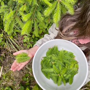 Das Gesetz erlaubt das Sammeln von nicht geschützten Pflanzen in kleinen Mengen zum Eigengebrauch. In Naturschutzgebieten gelten strengere Regeln, dort bitte nicht sammeln. Wer den Waldbesitzer kennt, fragt am besten nach. Selbstverständlich ist, dass man sich achtsam durch den Wald bewegt und die Natur respektiert. Von jedem Nadelbaum werden nur wenige Schössli gepflückt, um den Baum nicht zu schädigen. Plant also einen grossen Waldspaziergang ein. Junge Bäumchen lässt man ganz sein, um sie nicht beim Wachsen zu stören. Wir pflücken Schössli ab einer Höhe von ca. einem Meter ab Boden, um nicht diese zu ernten, die Tiere beim Gassigehen erreichen.