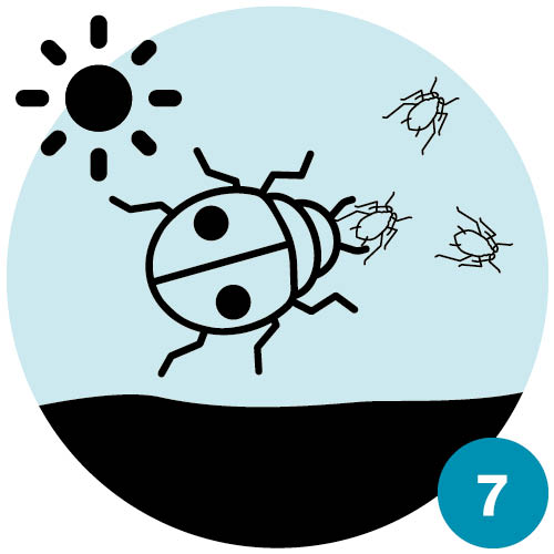 Allerdings sind die Mittel im direkten Kontakt auch für die Marienkäferlarven problematisch. Sie sollten daher nur zur Anwendung kommen, wenn keine Nützlinge auf der Pflanze gesichtet werden und in jedem Fall, bevor man Nützlinge ausbringt.