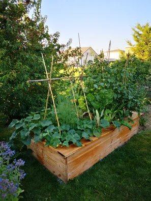 | Période de récolte plus longue grâce à des couches de sol plus chaudes / climat du parterre | Selon les plantes choisies, il faut prévoir des tuteurs ou plus d'espace |