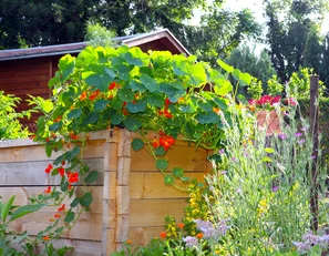 Les tuteurs et les éléments grimpants permettent d'exploiter au mieux l'espace dans les plates-bandes surélevées.